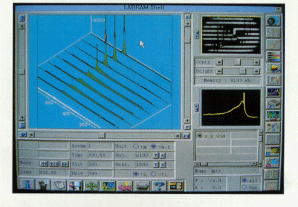 MICRO-RAMAN- VISIBLE- INTEGRADO. Espectrometro Raman de luz visible roja con microscopio, modelo es LabRam 010 con resolución de 1 mm y barrido.. El equipo fue diseñado y construido por Instruments S. A.